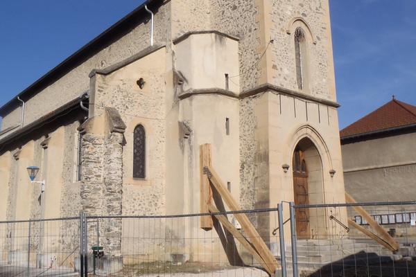 L’église Saint-Pierre souffre de fissurations évolutives sur son clocher, nécessitant une analyse approfondie. Nous avons réalisé :